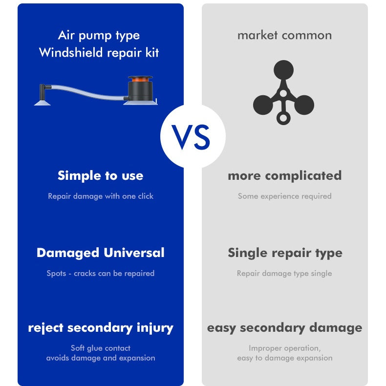 The Air Pump Windshield Repair Kit is a game-changer for anyone dealing with annoying cracks and chips on their vehicle's windshield. This innovative kit provides an effective solution for repairing windshield damage, ensuring a clear and safe driving experience.